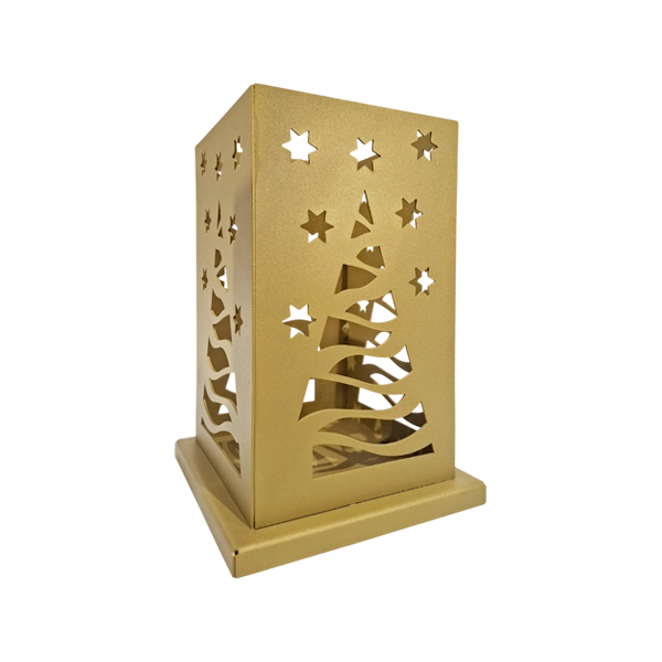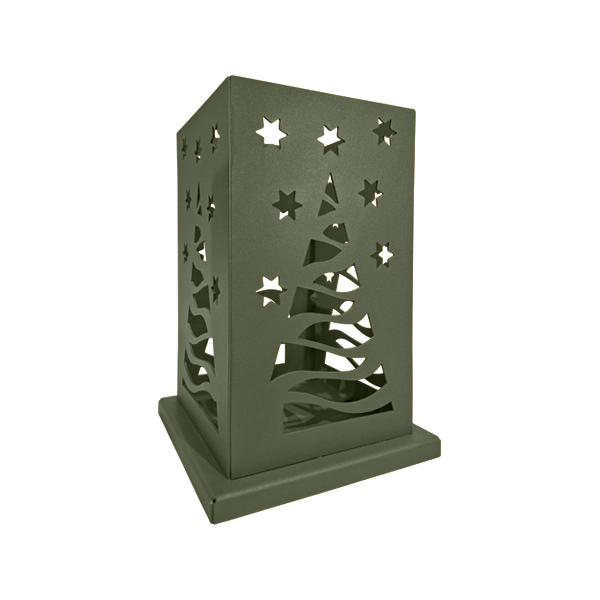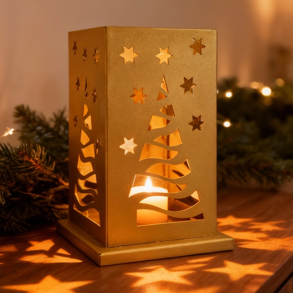 Christmas Tree Lantern | DIZE Art Objects. A festive metal lantern featuring a stylized Christmas tree and star cut-outs that cast a warm, decorative glow when lit. Designed to hold candles safely inside, the Christmas Tree Lantern brings cozy ambiance and elegant holiday charm to any interior. A refined seasonal piece by DIZE Art Objects.