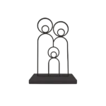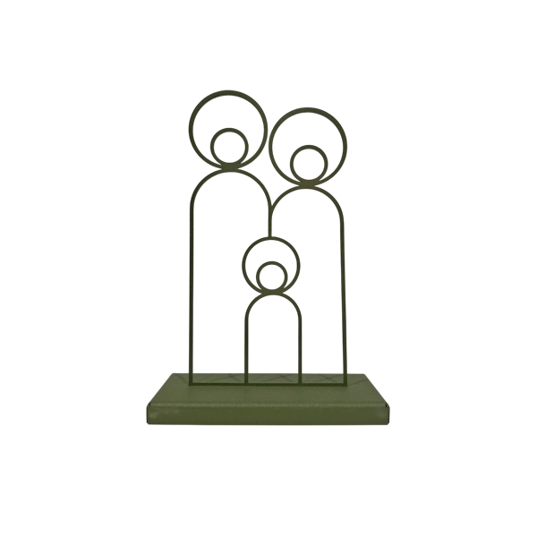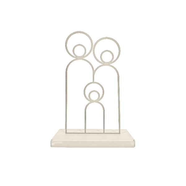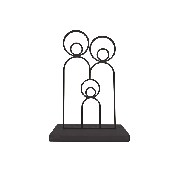 Virgin Mary, Christ & Joseph – DIZE Art Objects. A minimalist metal sculpture that captures the Holy Family in a single continuous line. Elegant, symbolic, and timeless — a contemporary piece that brings serenity and sacred warmth to any space.