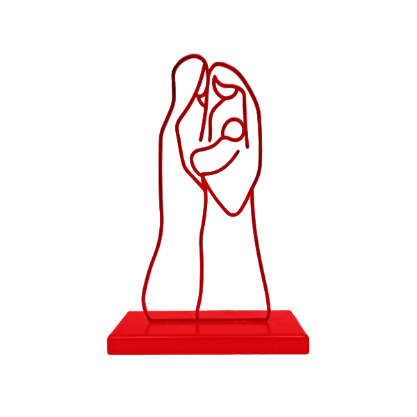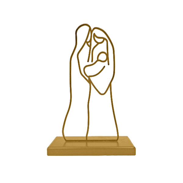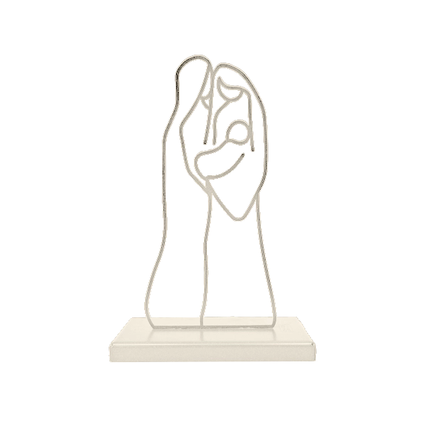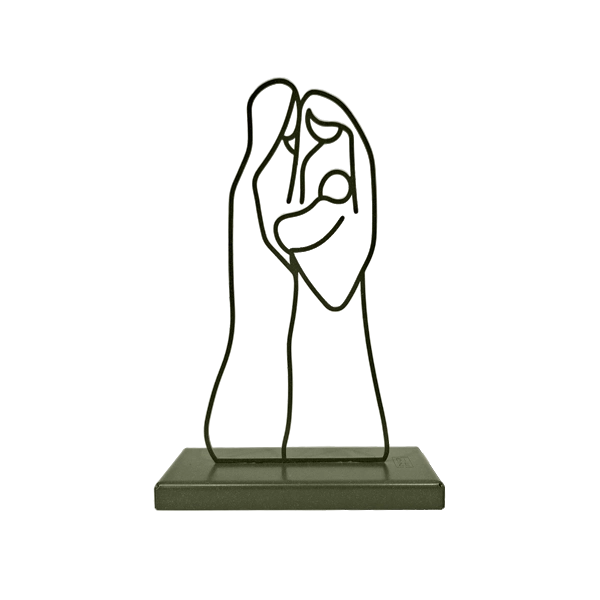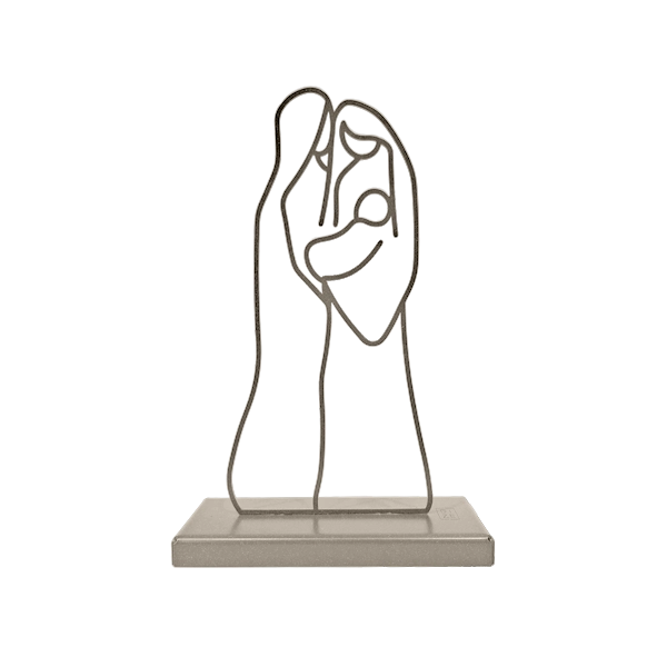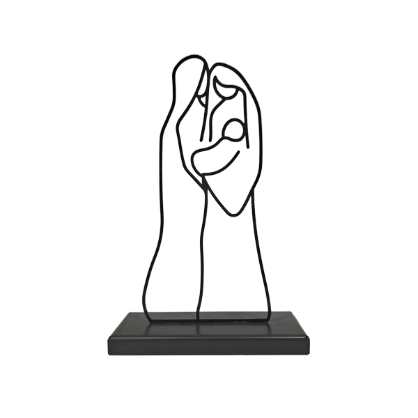Virgin Mary, Christ & Joseph – DIZE Art Objects. A minimalist metal sculpture that captures the Holy Family in a single continuous line. Elegant, symbolic, and timeless — a contemporary piece that brings serenity and sacred warmth to any space.