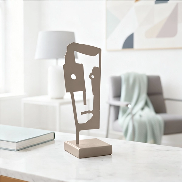 Abstract Face a minimalist metal sculpture designed by architect Dimitris Zelios, featuring a stylized facial profile that exudes elegance and modernity. Crafted with clean lines and fluid contours, this piece adds a touch of contemporary artistry to any setting. Ideal for Living rooms, bedrooms, offices, and entryways seeking a subtle yet impactful decorative element.