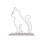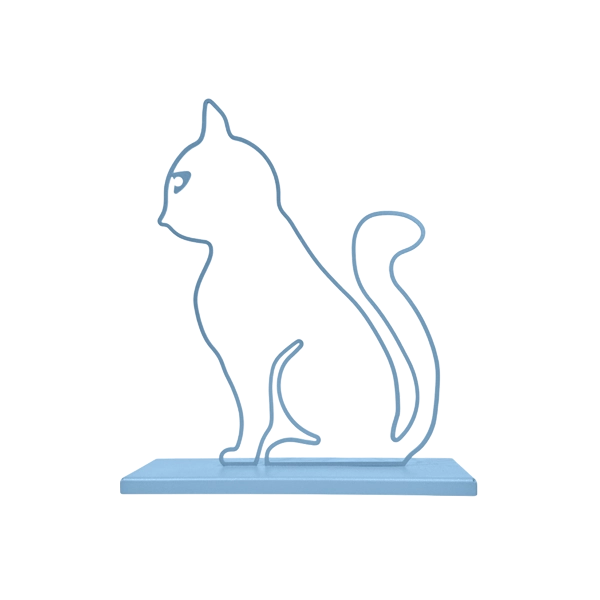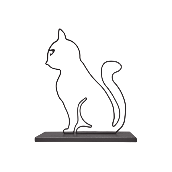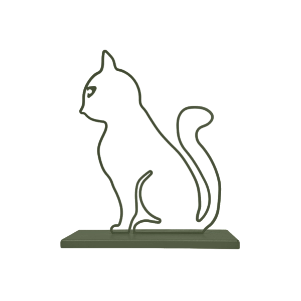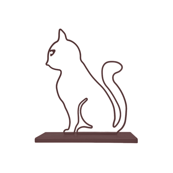 A minimalist metal sculpture capturing the sleek form and curious posture of a cat. Its simple lines create a calm yet playful presence with a durable design ideal for both indoor and outdoor settings. Ideal for: Shelves, desks, cozy corners, gardens, or outdoor spaces in homes or offices with a love for feline grace.