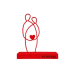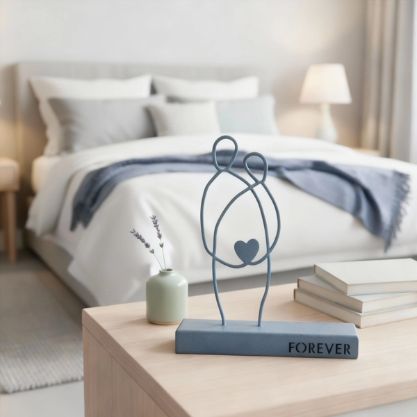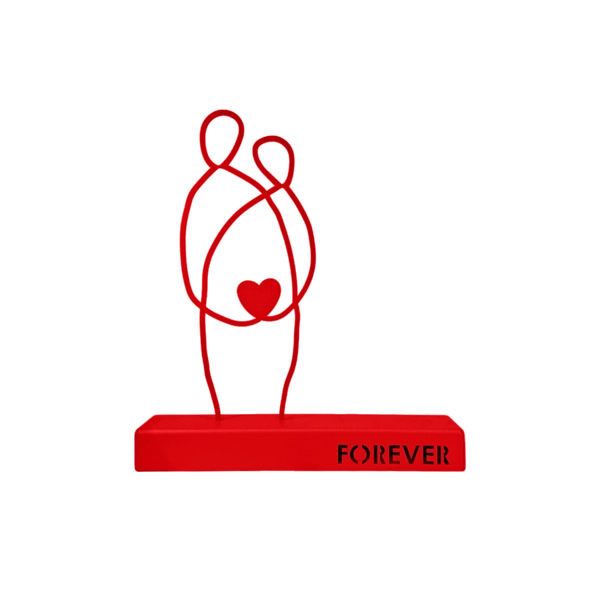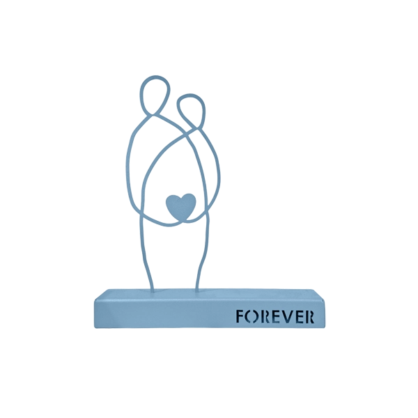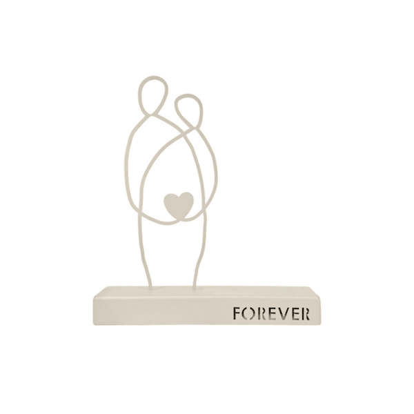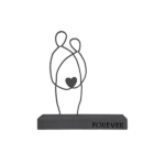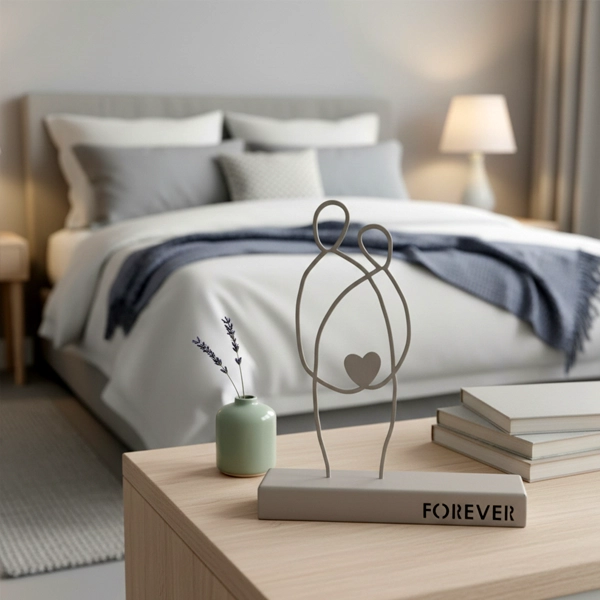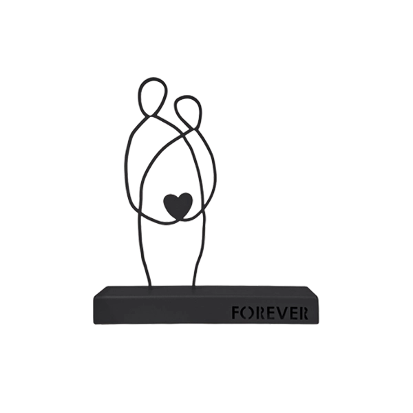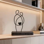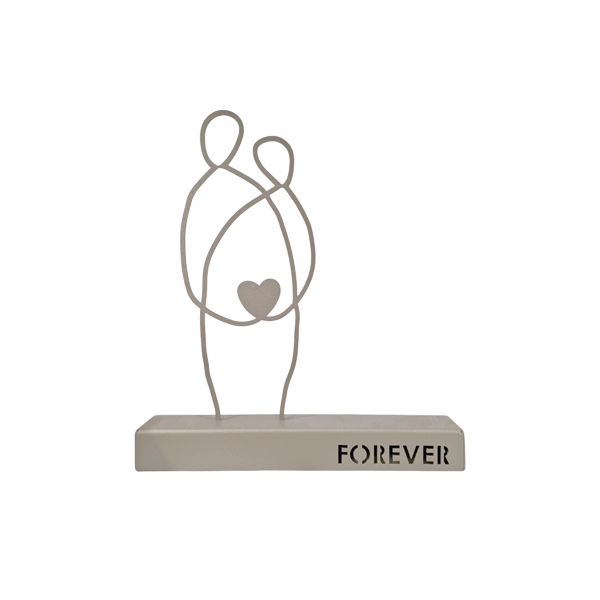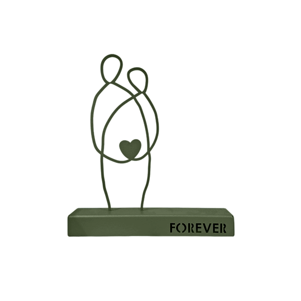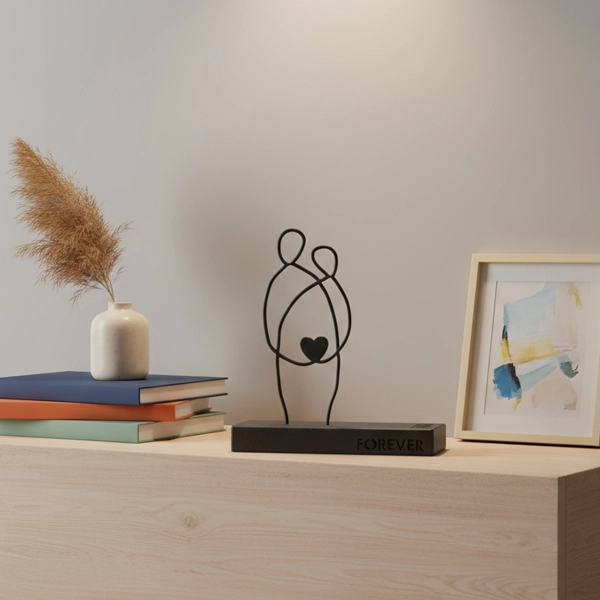 A minimalist metal sculpture depicting two abstract human figures seated side by side, symbolizing unity and enduring connection. Its clean lines and subtle design evoke themes of companionship and togetherness. Ideal for: Living rooms, bedrooms, offices, or spaces celebrating love and unity.