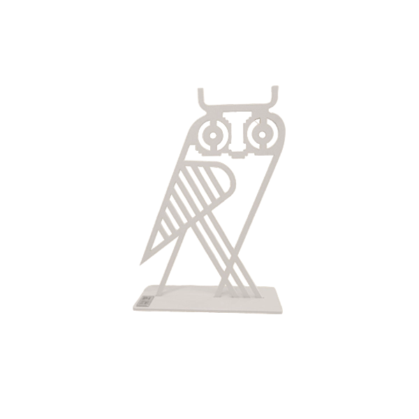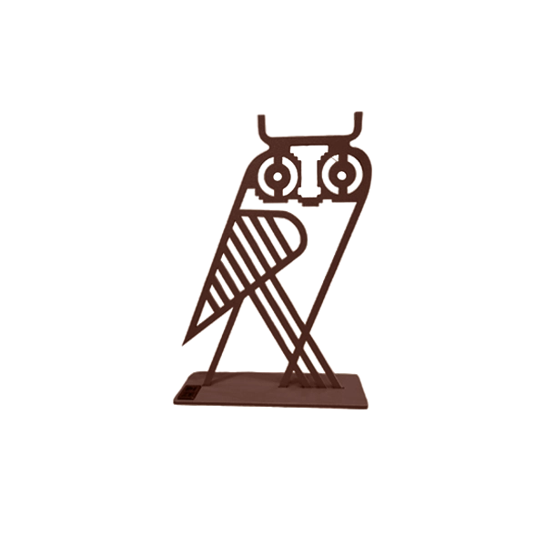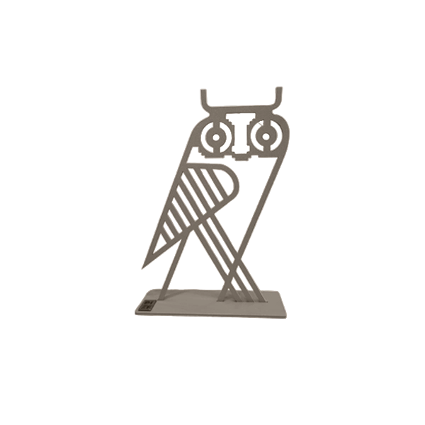 Geometric Owl. A refined metal owl sculpture with a minimalist, architectural form.