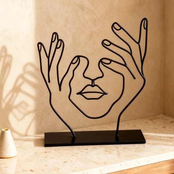 Woman’s Face a minimalist metal sculpture showcasing a stylized female face with closed eyes and serene expression. Crafted with clean lines and smooth contours, this piece captures the essence of tranquility and introspection. Its subtle design adds a touch of sophistication to any space. Ideal for: Modern living rooms, bedrooms, offices, or spaces seeking a unique and artistic accent.