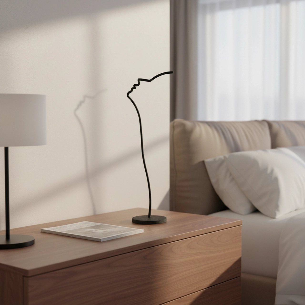 Woman’s Profile a minimalist metal sculpture depicting the side profile of a woman’s face. Crafted with clean lines and smooth contours, this piece captures the essence of femininity and elegance. Its subtle design adds a touch of sophistication to any space. Ideal for: Modern living rooms, bedrooms, offices, or spaces seeking a unique and artistic accent.