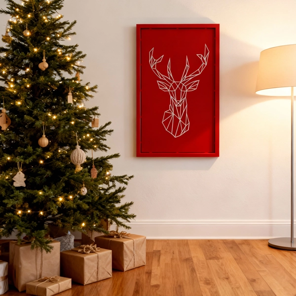Deer a striking rustic metal wall art piece depicting a stylized deer head with antlers. Its minimalist design and weathered finish evoke natural elegance, making it ideal for mountain homes, resorts, and festive Christmas decor.