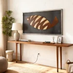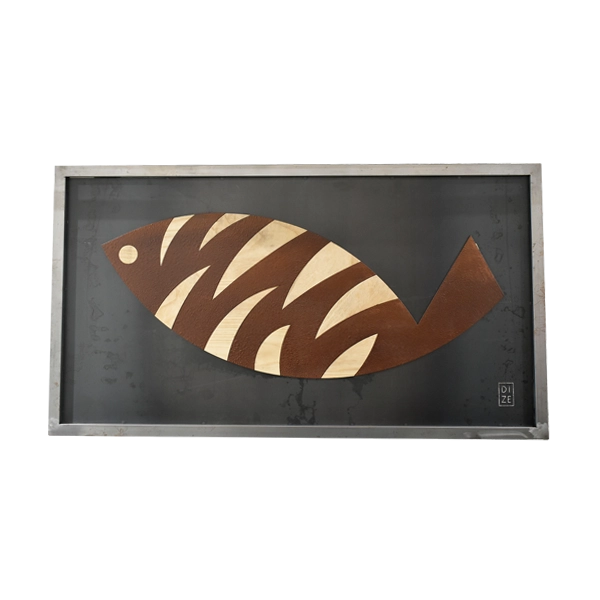 Fish Zebra a captivating wall art piece featuring a stylized fish with zebra-like stripes, crafted from metal with a rustic finish. The minimalist design and natural tones evoke a sense of organic elegance, making it a perfect addition to modern interiors seeking a touch of nature-inspired charm.